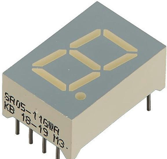 Тип дисплея 1 цифра, по 7 сегментов, Высота символов 12.7 мм, Цвет свечения зелёный, Схема включения общий анод, Типовая яркость 10 мкд